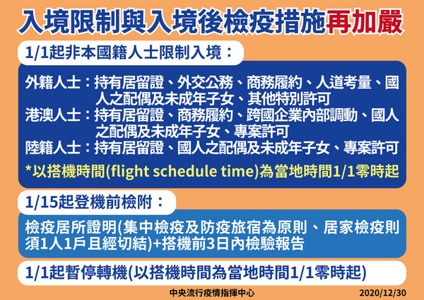 【新冠肺炎注意事項】各位同學們請注意,無論有沒有居留證,華語學生都沒有開放入境 2020-12-31• 活動訊息 各位同學們請注意,無論有沒有居留證,華語學生都沒有開放入境,請各位同學於放假期間不要出國。 附件下載 入境限制.jpg
